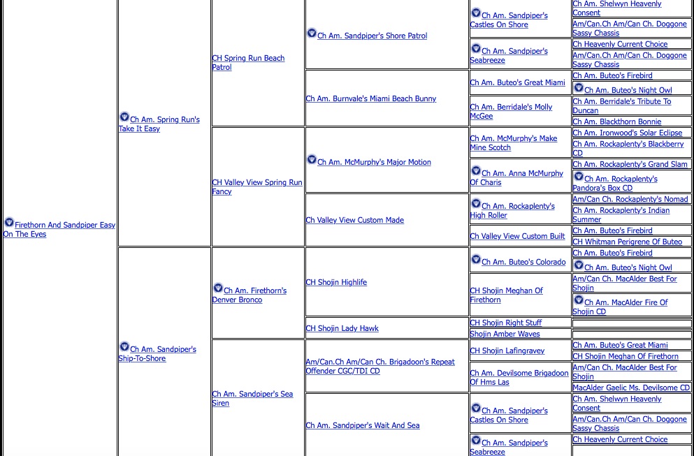 2011![]() GCH SANDPIPER'S CASTLES IN THE AIR 'Flyer' PEDIGREE ![]() CH WOODSMOKE'S TEN CENTS A DANCE ![]() CH FIRETHORN'S EYE DEAL ![]() CH FIRETHORN AND SPRING RUN'S LET'S MAKE A DEAL ![]() CH AMBERLOVE SASTYA CARAMEL LATTE PEDIGREE |