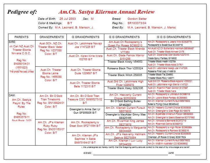 2005![]() SASTYA KILERNAN ANNUAL REVIEW 'Buck' PEDIGREE |