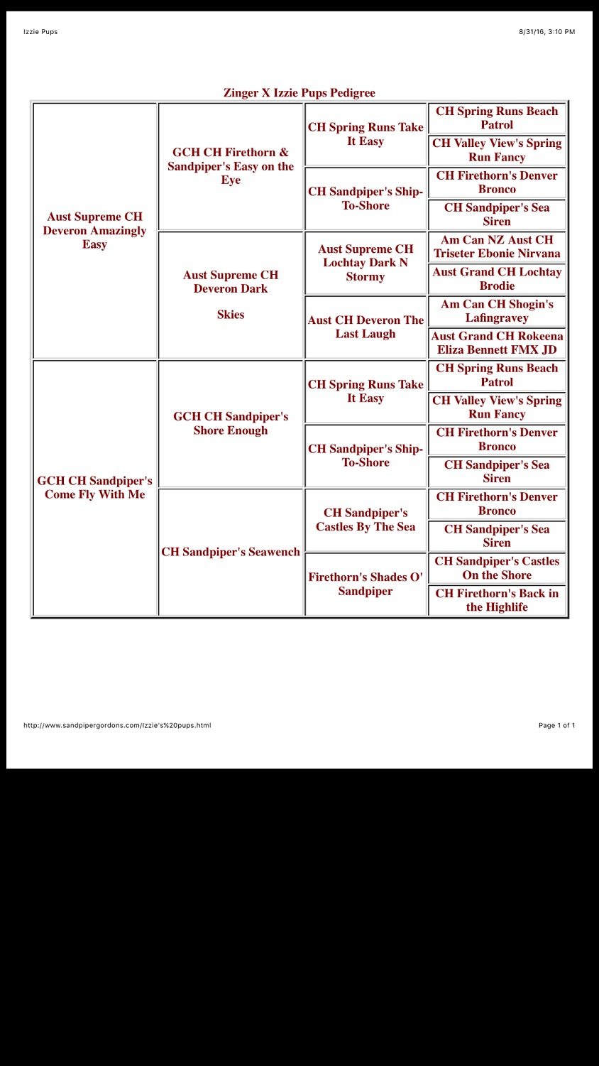 2006![]() FIRETHORN AND SANDPIPER EASY ON THE EYES (BOW) 'Carson' PEDIGREE |