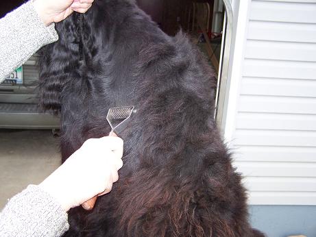 ![]() Back is also striped with a blade stripper or thinned with thinning shears |