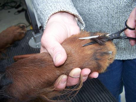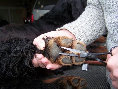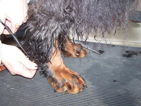 ![]() Keeping paws clipped is a must, as the hair on a Gordon's feet can act like sponges picking up dirt and water |