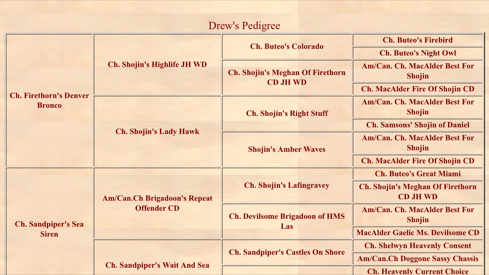 2002![]() SANDPIPER'S SHESELLSSEASHELLS 'Charlie' PEDIGREE |