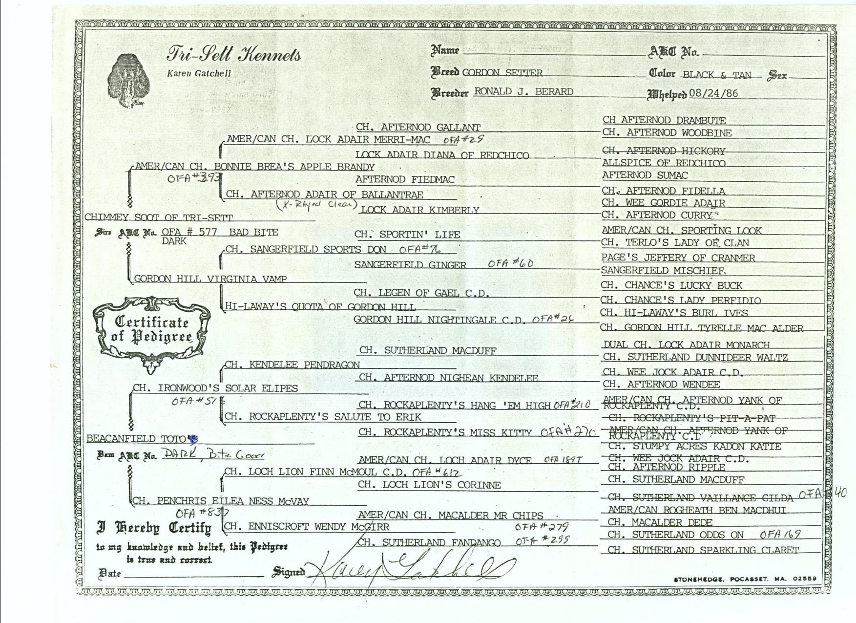 1988![]() JUSTIN OF TRI-SETT 'Juggs' PEDIGREE |